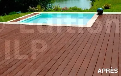 - Terrasses, pontons, façades et autres ouvrages bois extérieurs.