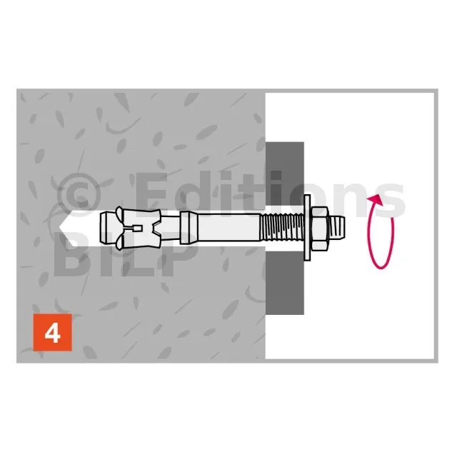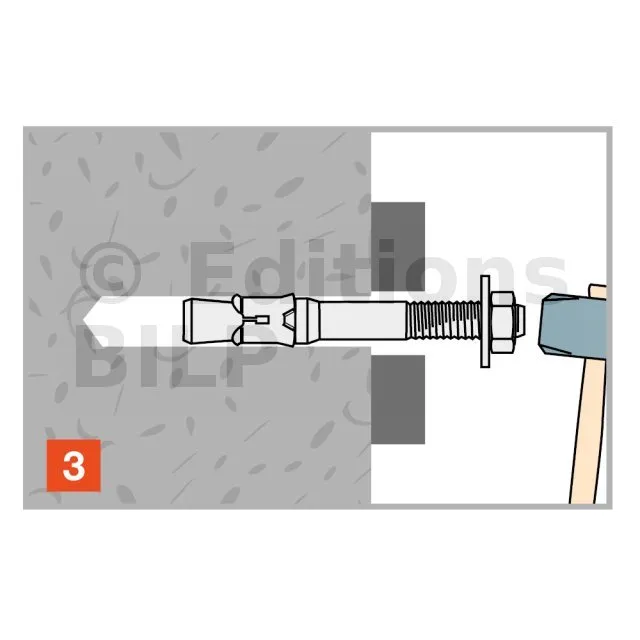 - Montage au travers de l’élément à fixer, Ø de perçage = Ø de cheville,