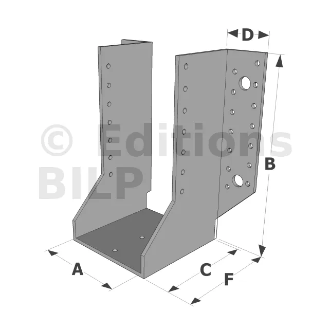 Les sabots GSE en acier galvanisé offrent une flexibilité grâce à des largeurs au choix selon les plages indiquées. Cette caractéristique permet de s’adapter parfaitement aux dimensions spécifiques des éléments de construction, garantissant une compatibilité optimale et une fixation stable.