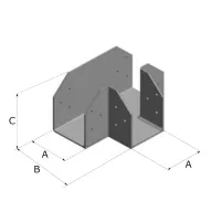 La résistance caractéristique total de la platine est donnée ci-dessus. Si deux éléments bois sont connectés avec une surface d’appui égale, alors la charge appliquée sur chaque élément ne doit pas excéder la moitié de la résistance totale. Si l’un des deux éléments connectés ne repose que sur une aile en porte à faux de la platine, alors la charge appliquée sur cet élément ne doit pas excéder 0.28 fois la résistance totale, la charge appliquée sur l’autre élément reposant sur le reste de la platine ne doit pas excéder 0.72 fois la résistance totale.