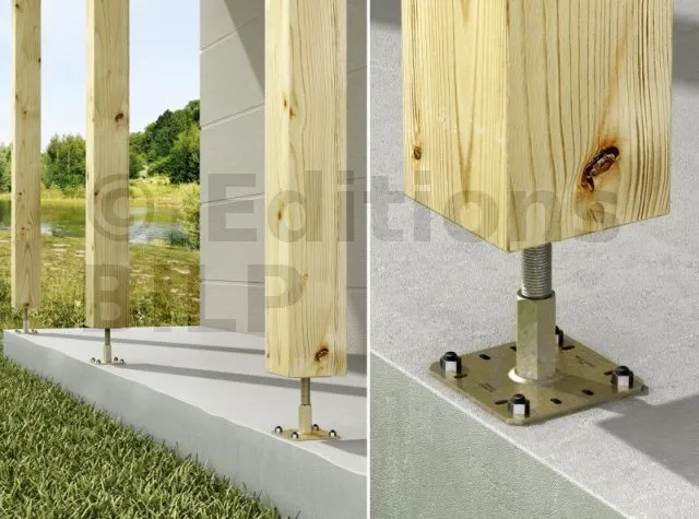 2. Fixer cette platine au poteau à l’aide de tirefonds LAG (pré-perçage nécessaire)
