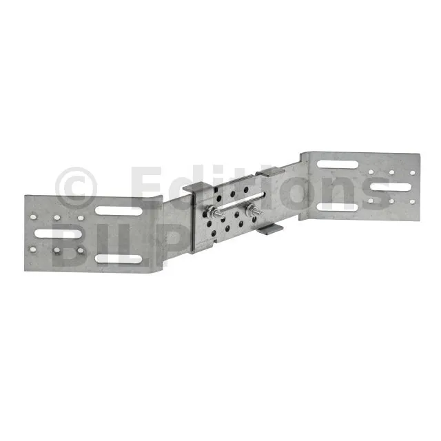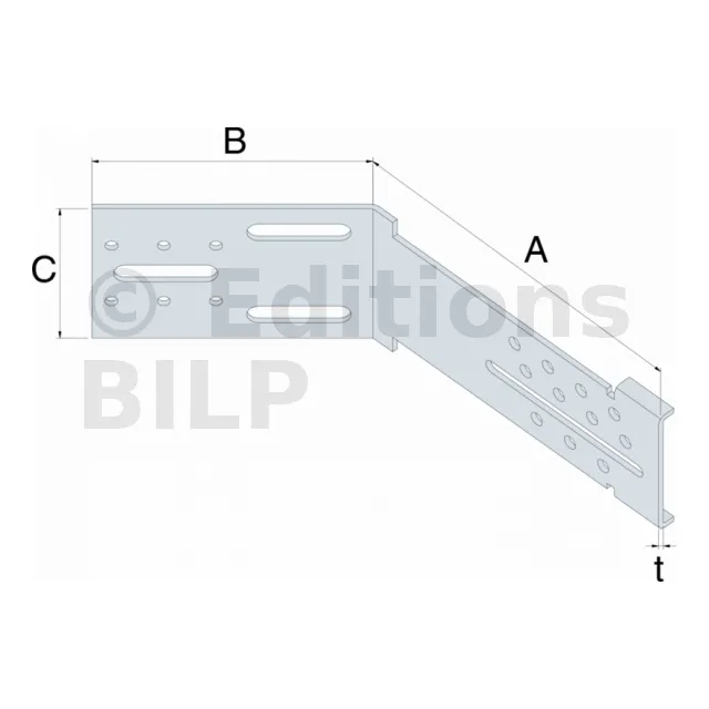 - L’équerre d’angle AB45C est compatible avec les équerres de bardage EBC, de l’EBC160 à l’EBC250. Elle peut être utilisée pour une isolation derrière chevron allant de 120 à 180 mm,