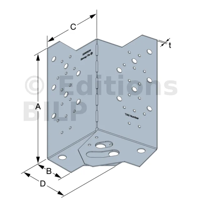 | Références | Section de bois [mm] | Dimensions [mm] | Perçages | ||||||||