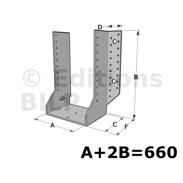 Les sabots GSE en acier galvanisé offrent une flexibilité grâce à des largeurs au choix selon les plages indiquées. Cette caractéristique permet de s’adapter parfaitement aux dimensions spécifiques des éléments de construction, garantissant une compatibilité optimale et une fixation stable.