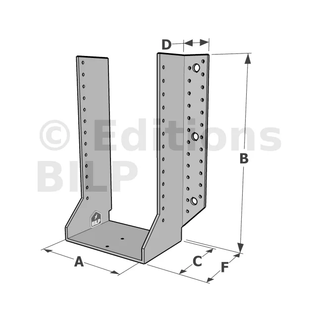 Les sabots GSE en acier galvanisé offrent une flexibilité grâce à des largeurs au choix selon les plages indiquées. Cette caractéristique permet de s’adapter parfaitement aux dimensions spécifiques des éléments de construction, garantissant une compatibilité optimale et une fixation stable.