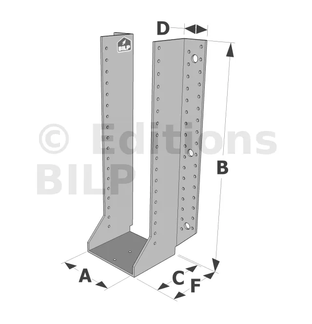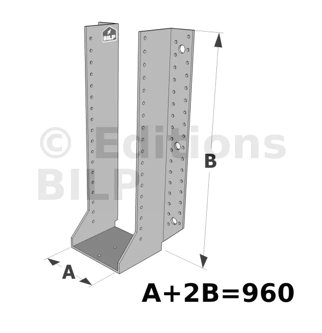Les sabots GSE en acier galvanisé offrent une flexibilité grâce à des largeurs au choix selon les plages indiquées. Cette caractéristique permet de s’adapter parfaitement aux dimensions spécifiques des éléments de construction, garantissant une compatibilité optimale et une fixation stable.