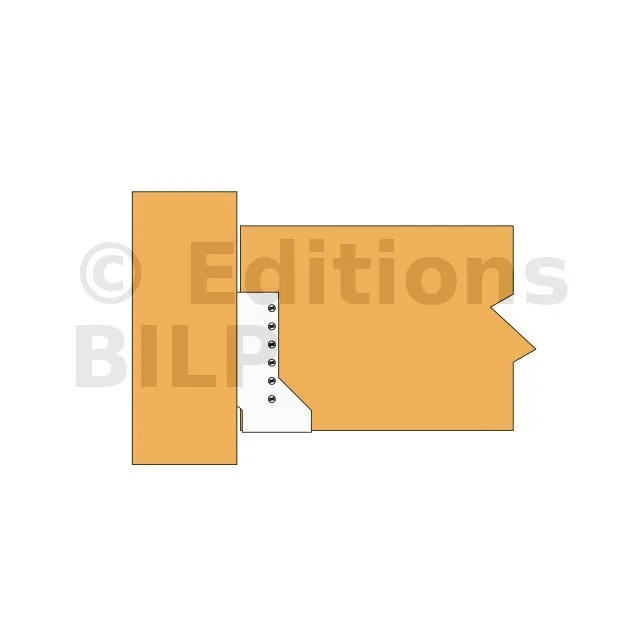 Attention, pour les sabots SAIX à ailes intérieures de largeurs inférieures à 80 mm, les ailes sont recoupées sur la hauteur dans l’axe des perçages de boulons. La fixation sur le porteur est donc uniquement possible par pointes ou vis dans la ligne verticale de perçages Ø5 proche du pli.