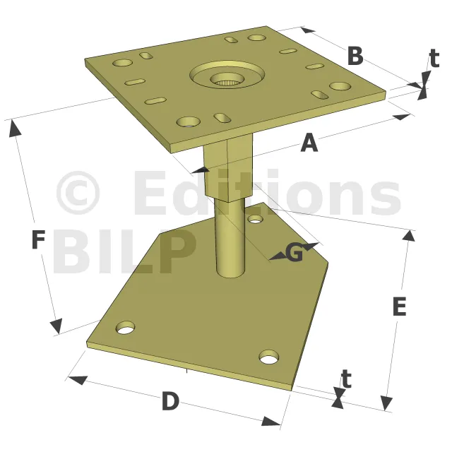Pied de poteau réglable pour angle de dalle béton