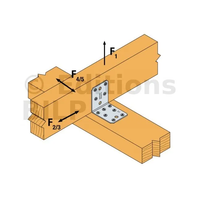 L’équerre AB105 répond à des applications structurelles dans la charpente et la maison à ossature bois.
