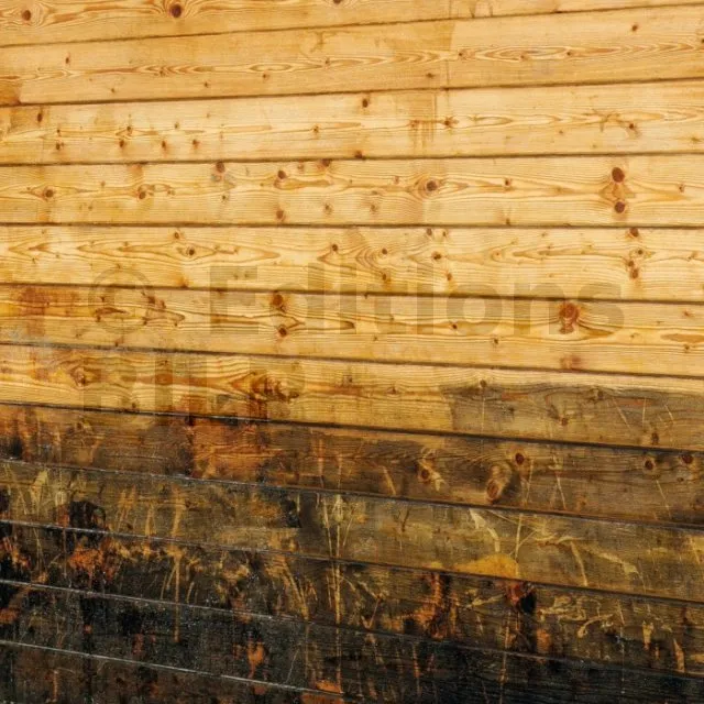 Eliminez en 5 minutes les huiles qui noircissent votre bois (terrasses, bardages,...).