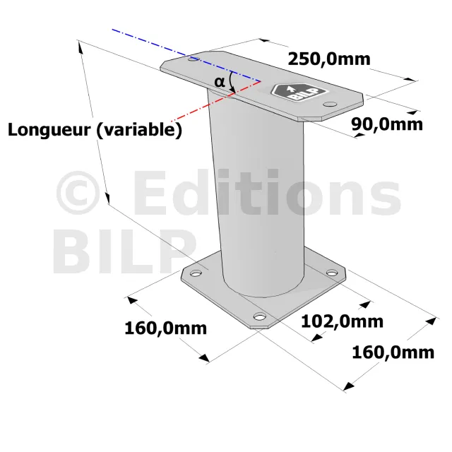 Poteau structurel OSP - D102mm - Platine haute rectangulaire 90x250mm - Embase 160x160mm