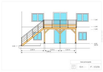 - Le calcul de la structure de votre terrasse (dimensionnement des éléments en bois). Il s’agit de la prestation : la vérification des plans