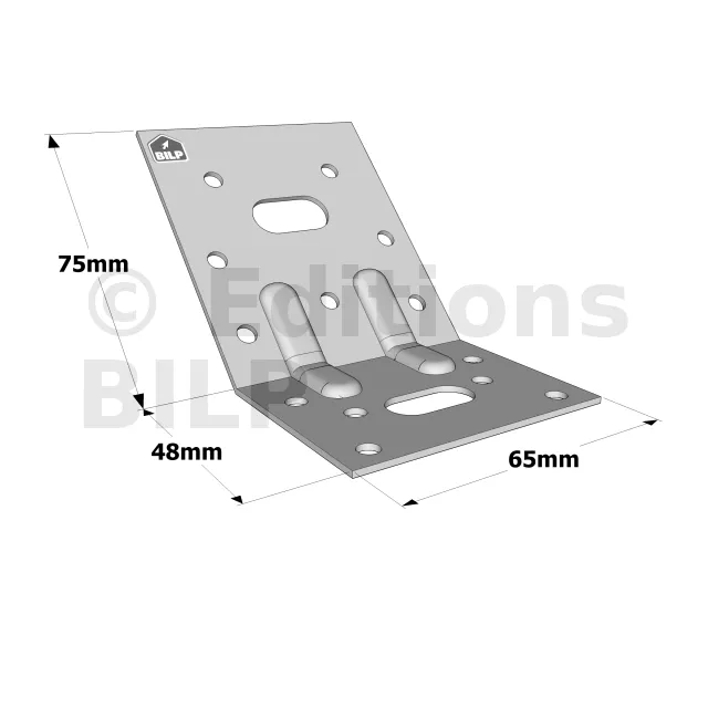 Équerres renforcées CLASSIQUES asymétriques pour le BOIS et le BETON - Réf. E5/1.5/135