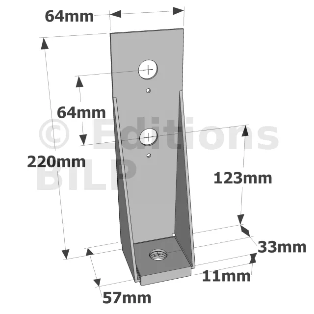 Ancrage pour montant d’ossature 64x220x57mm épaisseur 2.5mm - Réf. HD3B