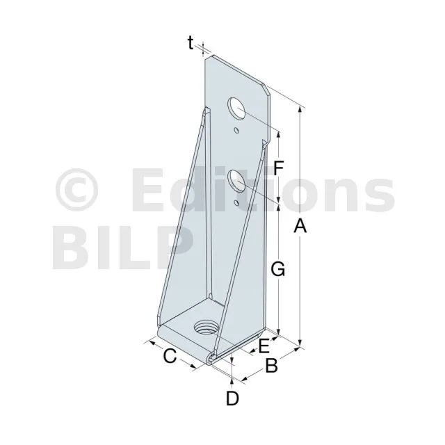 L’ancrage HD3B est utilisé pour transférer les efforts de traction à travers les planchers, pour ancrer les pannes à la maçonnerie ou au béton. La distance réglementaire du boulon au bord du bois est donnée par la hauteur E1. Fabriqué sans soudure ce qui assure de meilleures performances.