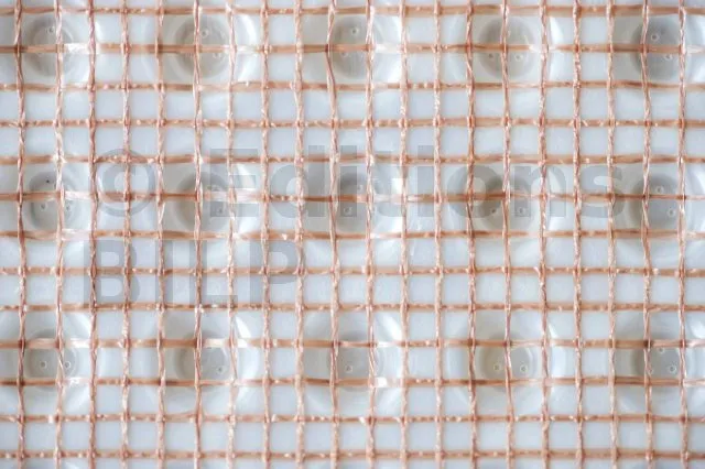 - MatériauNappe à excroissances en polyéthylène haute densité associée à un treillis en polyéthylène brun.