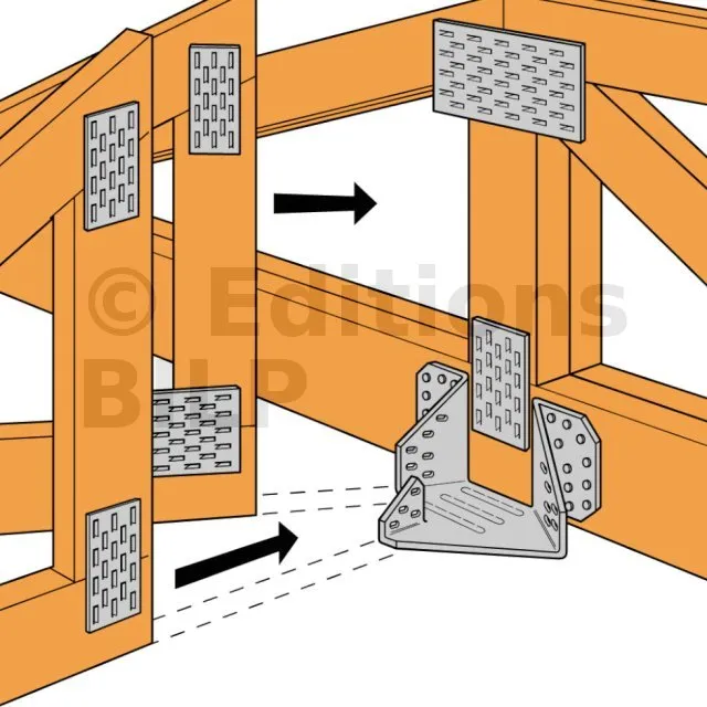 Assemblages de deux éléments : un arêtier et un empannon OU deux arêtiers sans empannon.