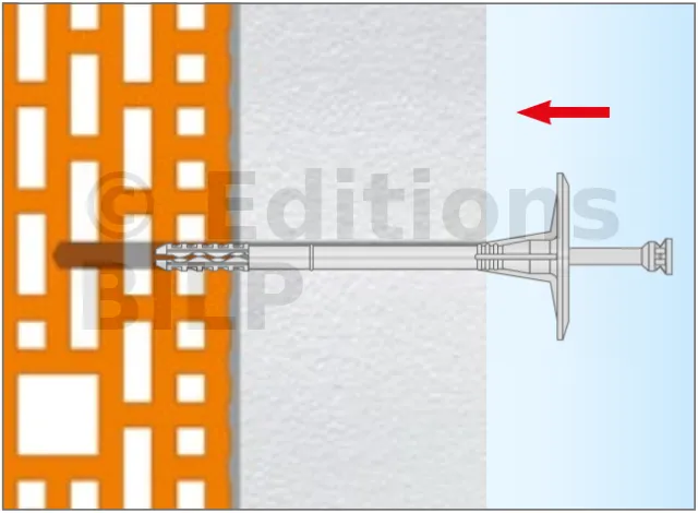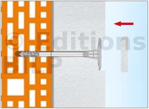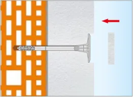 - Enfoncer le corps de la fixation de manière à ce que la rondelle de fixation soit orientée vers le matériau d’isolation thermique.