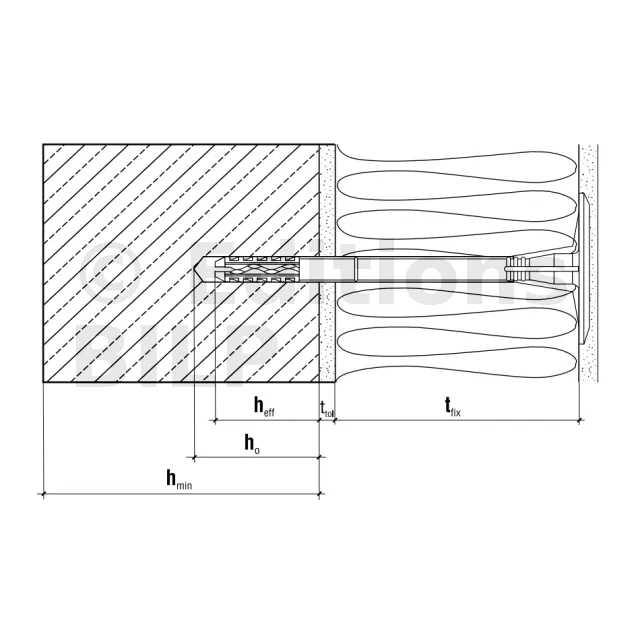 Fixation de l’isolation en polystyrène PSE (polystyrène expansé), PSX (polystyrène extrudé), laine minérale et feutre à lamelles MW.