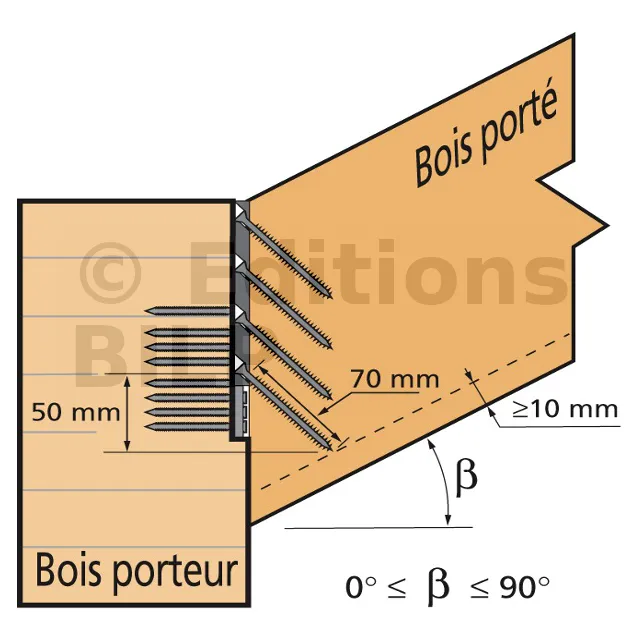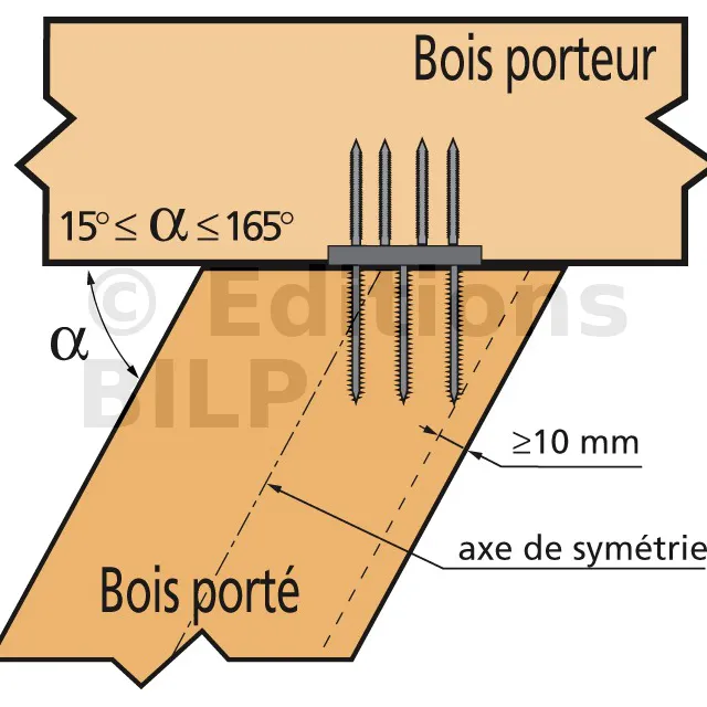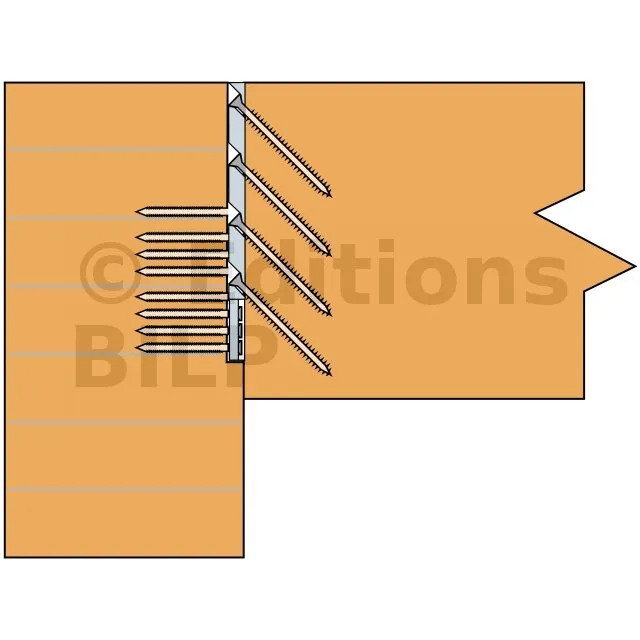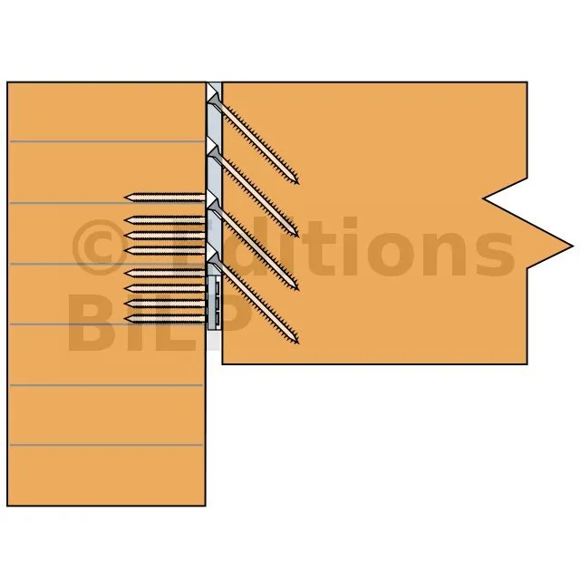 L‘Eurocode 5 permet l‘utilisation de pointes et vis non marquées CE. Toutefois, cela entraîne une diminution importante des charges. Se référer aux calculs des fixations de l‘Eurocode 5.