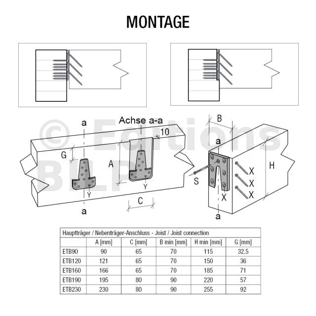 Pour garantir les charges, les pointes et vis utilisées doivent être conformes à l‘ATE-04/0013 et aux préconisations données ci-dessous :