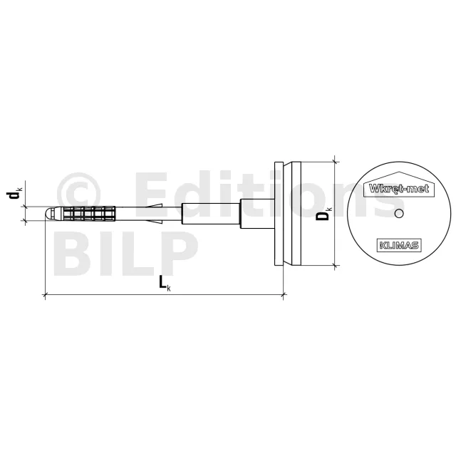 Un connecteur avec disque en polystyrène intégré, conforme à la norme ETAG 014, pour fixer le polystyrène EPS (polystyrène expansé) dans différents matériaux de la tête dans les systèmes ETICS, avec une faible conductivité thermique.