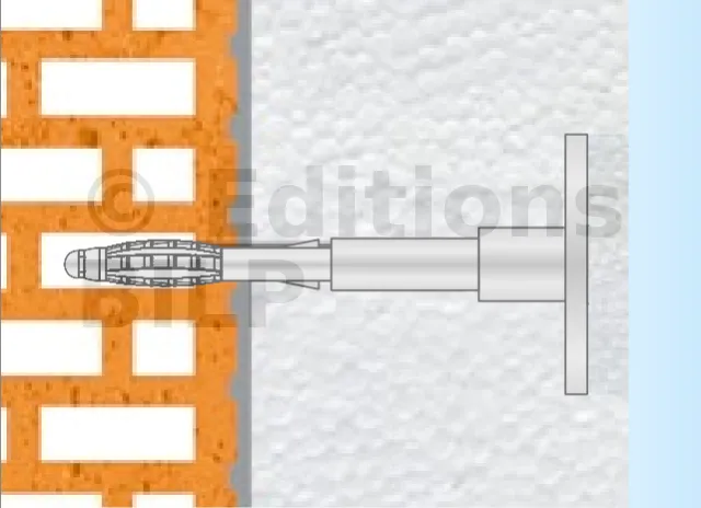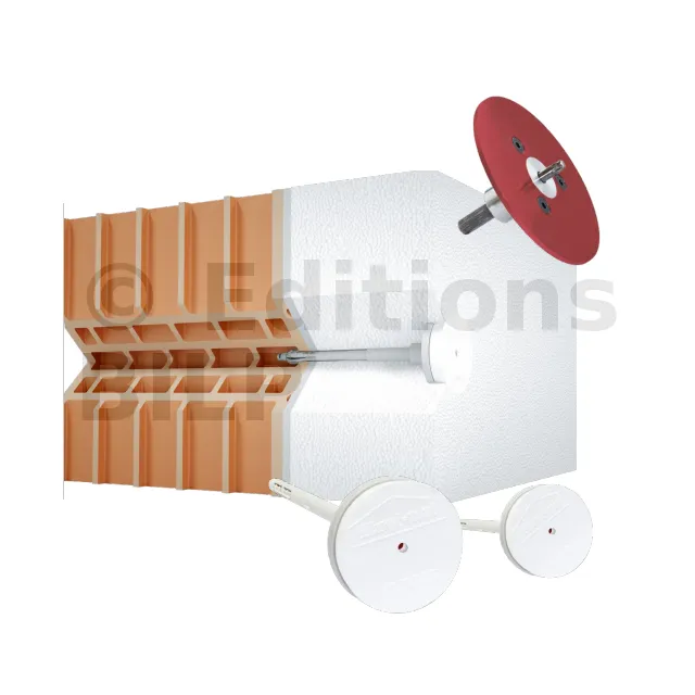 - Disque polystyrène : L’inclusion de disques polystyrène avec les connecteurs permet d’accélérer le travail, d’éliminer les ponts thermiques et d’améliorer l’esthétique de la surface extérieure.