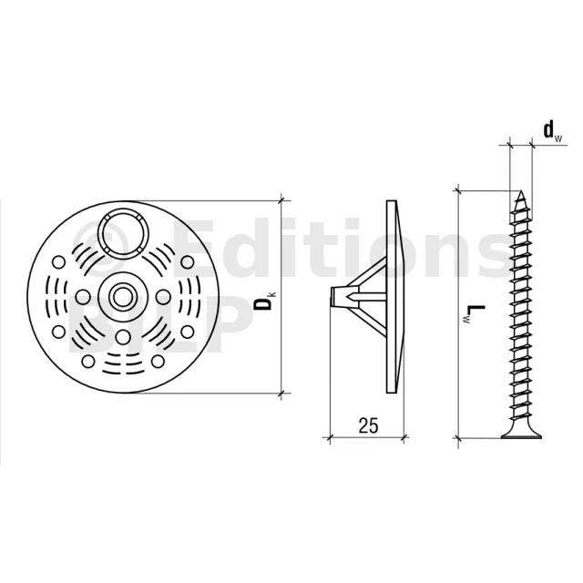 - Collerette d’appui : compatible avec une variété de vis, c’est l’idéal pour fixer des matériaux isolants de différentes épaisseurs.