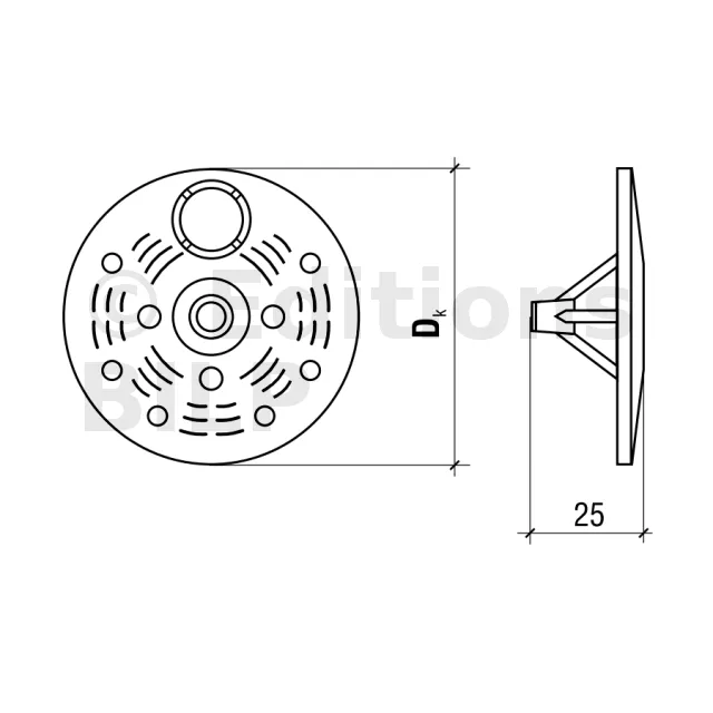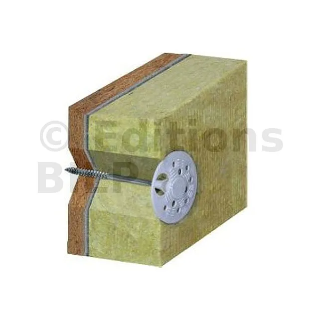 Rondelle isolante utilisée pour fixer le polystyrène EPS (polystyrène expansé) et la laine minérale sur des supports en bois et des substrats en tôles minces.