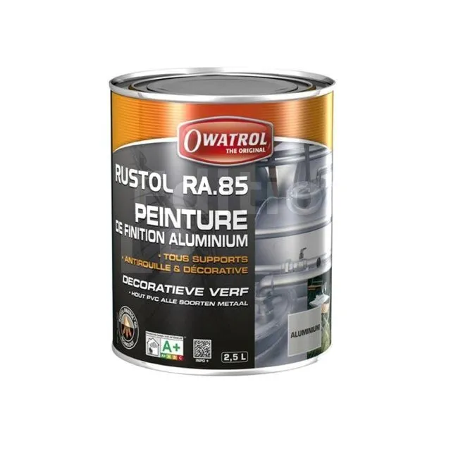 - Le RUSTOL-ALU RA.85 est à base de RUSTOL-OWATROL ; il sèche donc lentement, ce qui permet d’obtenir un film lumineux et très régulier qui, par ailleurs, conserve toujours une certaine souplesse.