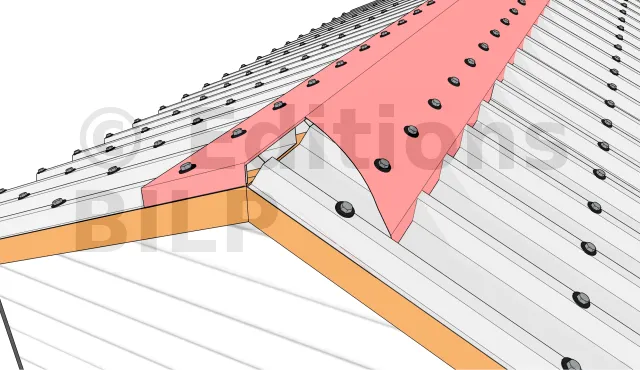 La tôle faîtière en acier se pose très facilement, il suffit de positionner la tôle bien au milieu des deux versants et d’assurer l’étanchéité des fixations.