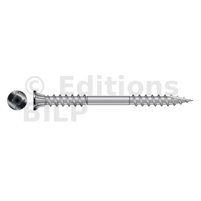 - Tête fraisée : s’intègre dans le bois pour une finition parfaite,