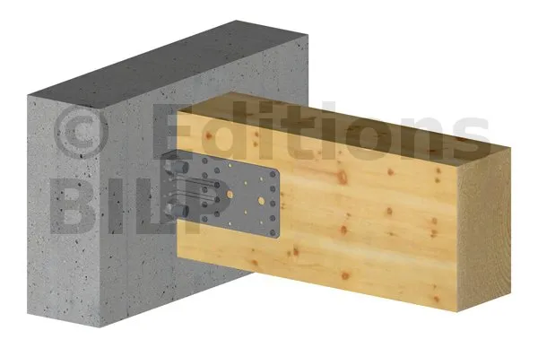 - Fixation bois/support rigide - type poutre/support rigideAile A : 14 type CNA4.0x40 ou CNA4.0x50 ; Aile B : 2 type goujon Ø10 ou tige filetée