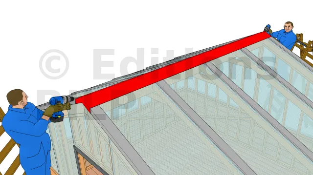 Posez la faîtière et finissez par un point de silicone tout le long du dessous de la faîtière pour l’étanchéité.